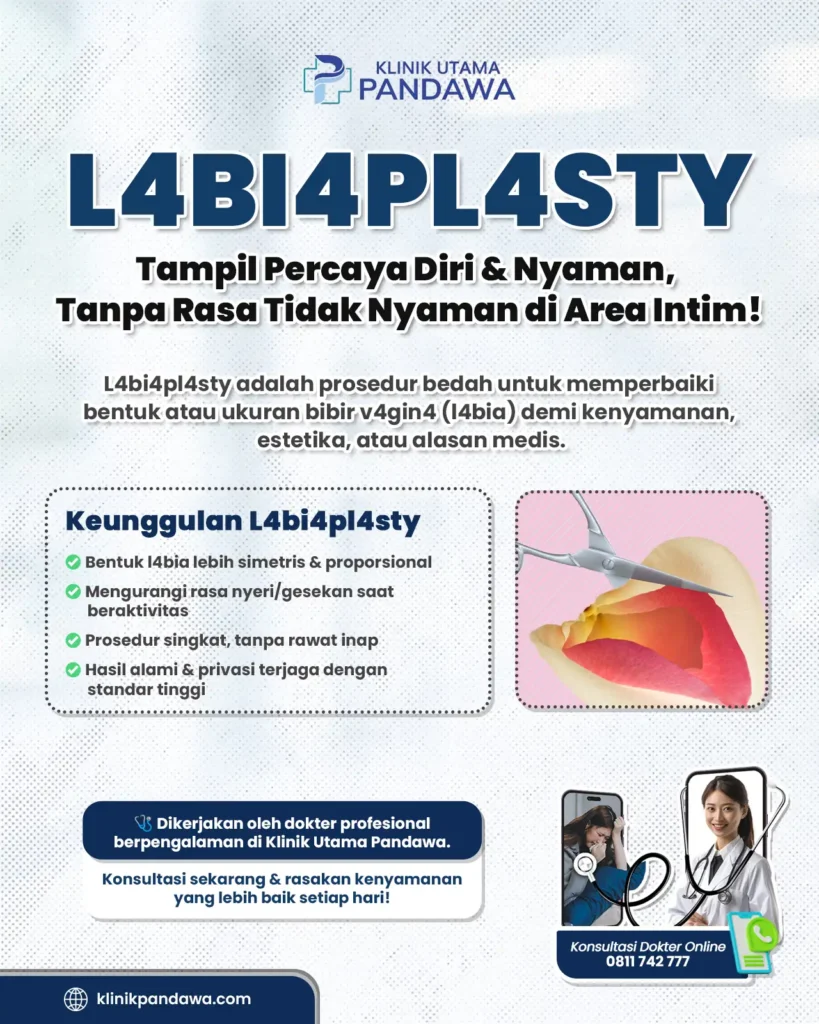 Jika kenyamanan area intim mulai mengganggu aktivitas atau rasa percaya diri Anda, jangan abaikan kondisi tersebut. Melalui penanganan medis yang tepat di Klinik Utama Pandawa, prosedur labiaplasty dilakukan secara aman, profesional, dan menjaga kerahasiaan pasien sepenuhnya. Konsultasi awal akan membantu Anda memahami kondisi secara menyeluruh tanpa rasa canggung atau tekanan.